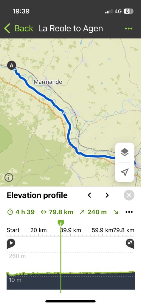 However, the track must have had some sharp grit or glass because I had my first puncture. I just pumped it up till I got to the town of Marmande. I wanted to be close to a bike shop, as sometimes a new inner tube can get nipped as it pumps up.