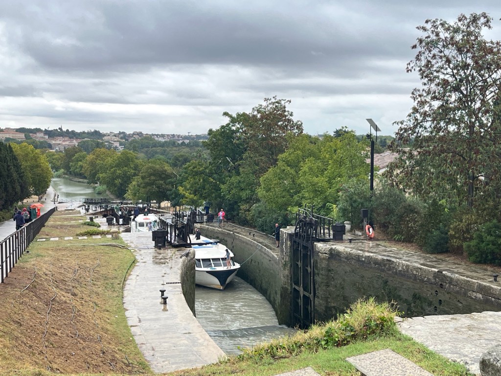 As I approached Agde I was hit by another longer downpour and I hid under the bridge of the D612 major road. It continued and didn’t look much like stopping so I had to persevere to the site where Janice was waiting in the car park.