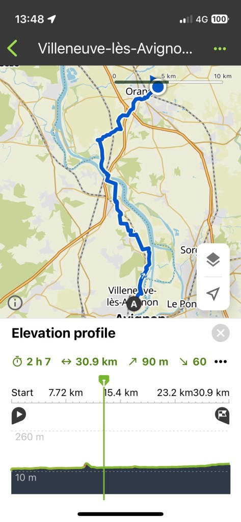 What a great win last night by Wales v Australia (40-6), possibly their best result ever against Australia . However, today was a non rugby day and an easy riding day too. Janice and I parted company in the morning (Janice in the van, me on the bike). My route was on the western side of the Rhône till I got closer to Orange.