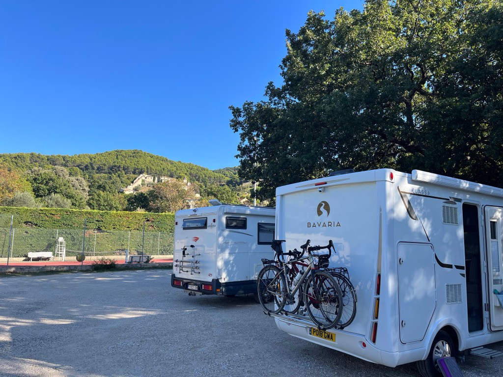As we left Orange we found a Decathlon store again. A new cycle bell for Janice’s bike and a fleecy top for each of us! Why we want a fleecy top in our current temperatures I don’t know, but as we like to say, ‘it were a bargain’! Perhaps we only bought them because the area is famous for its….wait for it…..Cotes du Rhône!