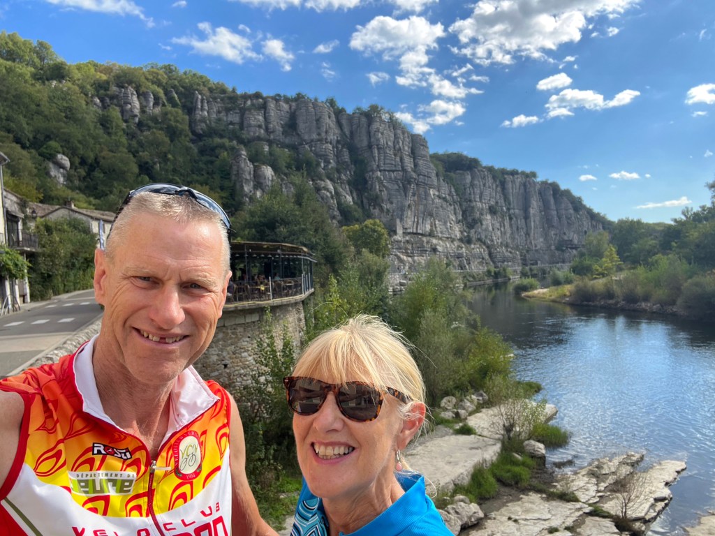 We debated whether to ride part of the ‘Via Ardeche’ cycle route down to Vogüé. I knew it was mainly on roads with a little final bit along a disused railway track….and it was hot. We decided to give it a go but the route was not signposted and seemed to involve some busier roads than we would have liked. However, we persevered. The goal was to get to the beautiful village of Vogüé where we have stayed before.