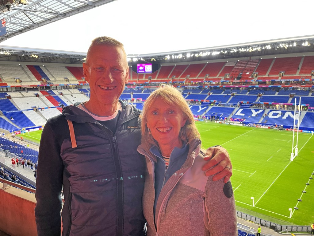 Later afternoon we started towards the Stadium and arrived 3 hours before the match. We had a drink and a pizza and then entered with what appeared like mainly New Zealand fans. Guessing who was who in the crowd was difficult because there were plenty of New Zealanders but many people wearing All Blacks clothes were actually French and many were from elsewhere…Switzerland, Germany and elsewhere. There were a few Uruguayan fans too but again quite a few were French. We did also see some Irish and Welsh fans and a couple of English.