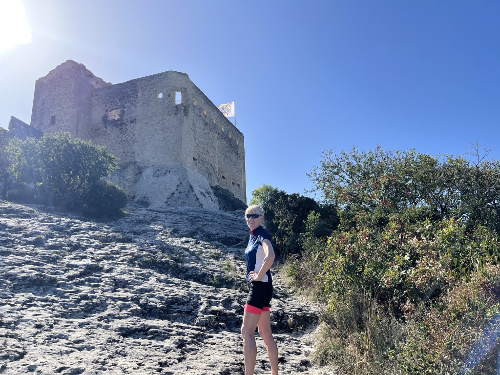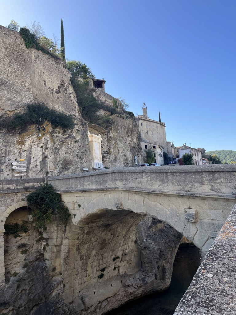 We arrived at Gigondas for lunch and set off on bikes in the heat of the sun to Vaison la Romaine….a place we have previously visited. We remember the Roman bridge and the medieval town and castle on a hill.