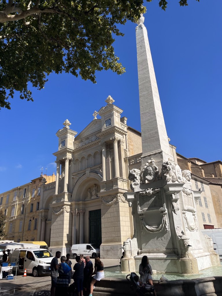 A lovely leisurely day sightseeing in Aix….which we now know is pronounced X. It was an easy bike ride into the centre. There was a market on, mainly clothes and accessories rather than food.