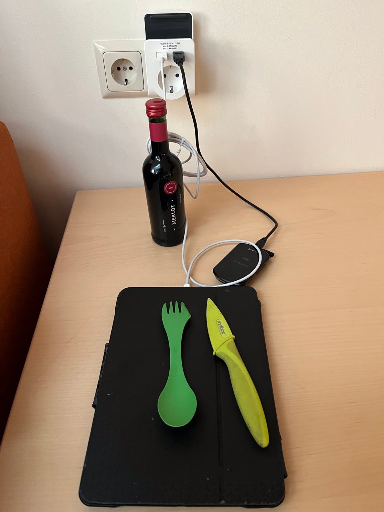 These things matter because I depend on the mobile, iPad and Garmin for getting around and blogging. I used Google translate app to ask n a could have shops if I could buy a UK to European adapter anywhere….no, was the reply. I later realised that I just needed a European plug with USB connections. No problem getting one of those….