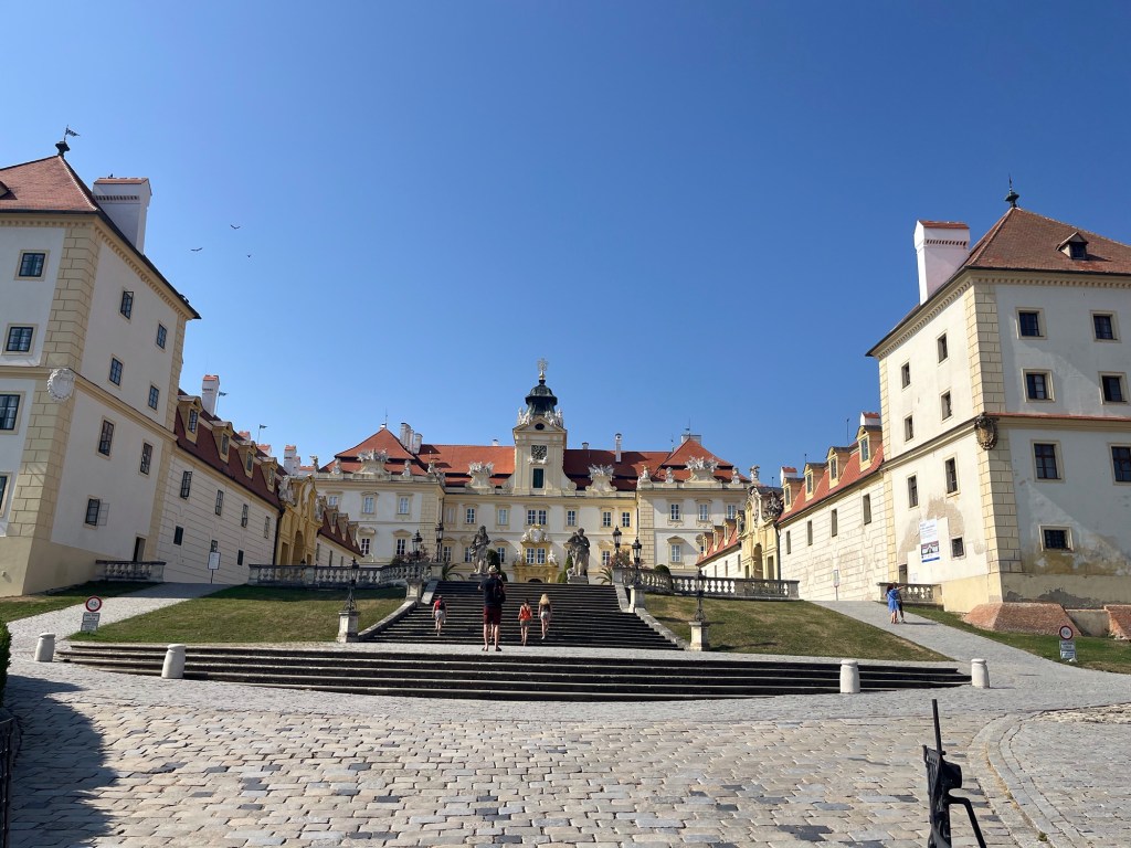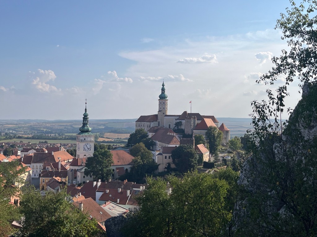 Onward I cycled to Mikulov. I got there by lunchtime, as I’d hoped. I knew it had a grand castle but I was still pleasantly surprised by the old town. It turns out to be the centre of the Czech wine region too.