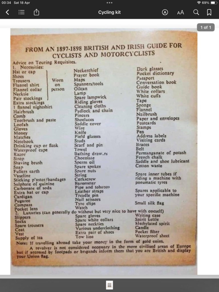 I think I have everything! Including the Fullers Earth, Sulphate of Quinine and don’t forget the Sperm Oil! The only problem is I have now got 6 panniers to carry.