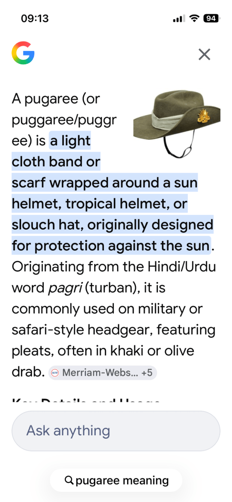 I hope David and Peter have got the loofah and pugaree! What is a pugaree? I had to Google it.